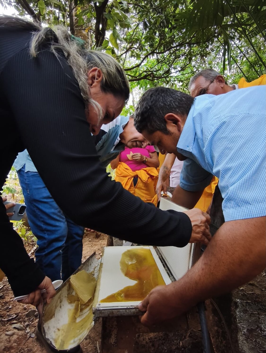 La jornada se llevó a cabo en la Granja El Diamante, ubicada en el corregimiento de Morichal, donde, mediante apiarios instalados, los participantes adquirieron conocimientos prácticos sobre el manejo adecuado de colmenas, protocolos de bioseguridad, manipulación segura de abejas y la estructura del apiario.