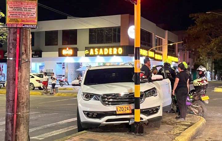 En horas de la noche de ayer, se registró un accidente de tránsito en la intersección de la calle 24 con carrera 23, en Yopal. Dos vehículos colisionaron, y como resultado del impacto, uno de ellos terminó chocando contra un semáforo de la zona.
