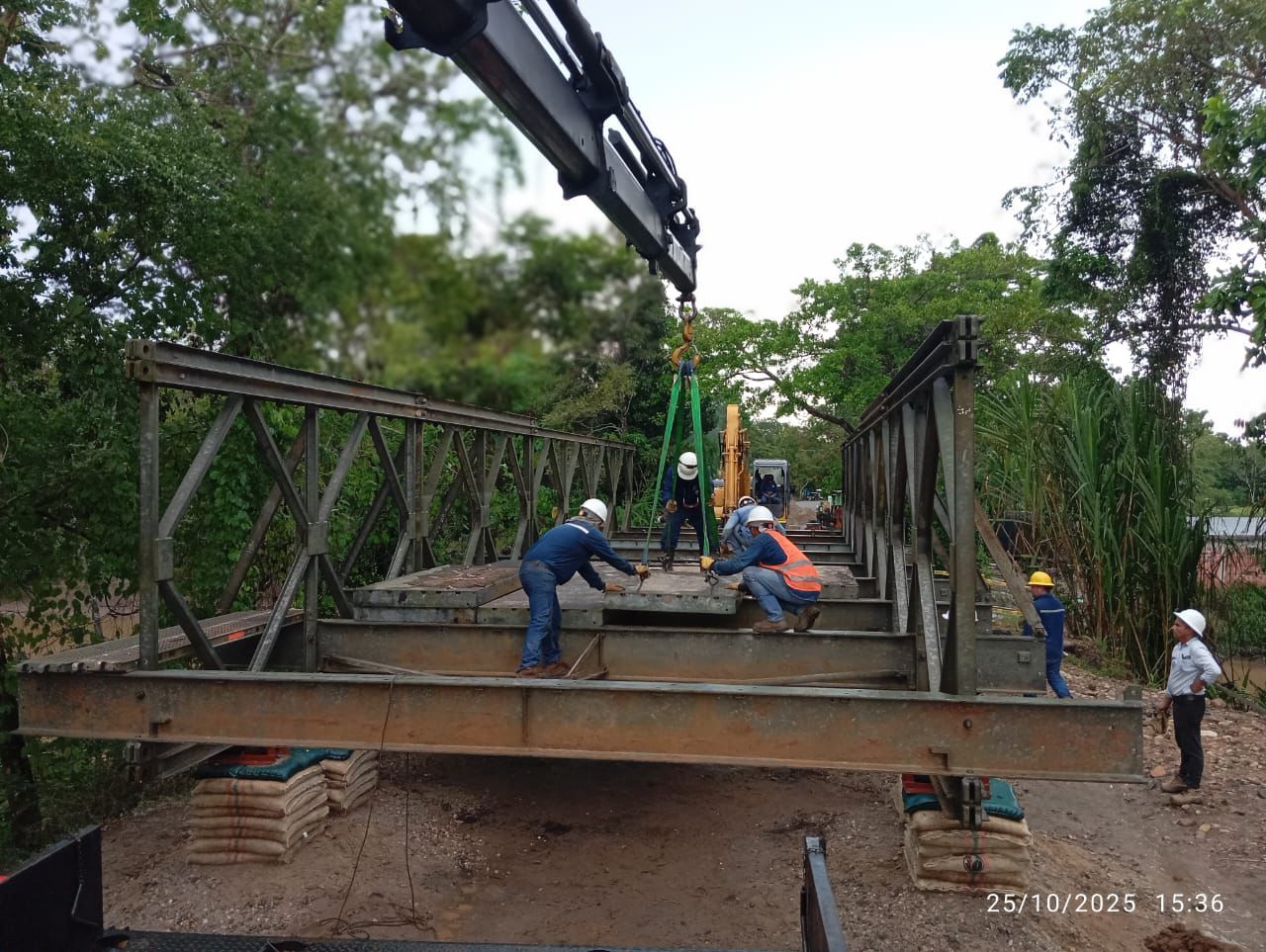 La instalación del puente Mabey sobre el caño Caranal, ubicado en la vía Arauquita – La Antioqueña, ha alcanzado un notable avance del 40% en el armado del puente metálico provisional y un 70% en la ejecución total de la obra. Este progreso es un testimonio del esfuerzo conjunto realizado por la Gobernación de Arauca, la empresa SierraCol Energy, Juncali y las comunidades locales, que han trabajado en colaboración para mejorar la conectividad vial en la región.