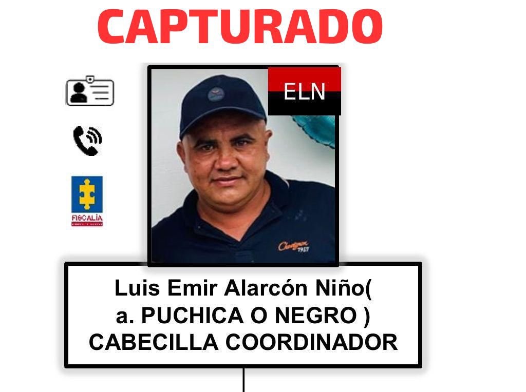 Un duro golpe al “Frente Domingo Laín Sáenz” del ELN fue propinado por las autoridades, con la captura de seis de sus integrantes en distintos municipios del departamento de Arauca, entre ellos alias ‘Puchica’ o ‘Negro’, señalado como cabecilla coordinador de esta estructura criminal.