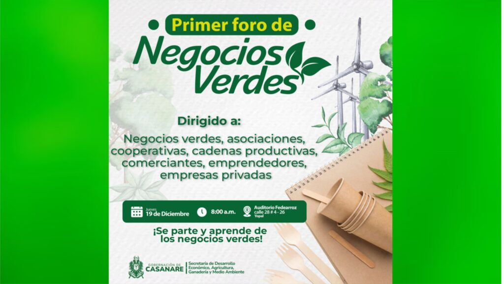 Mañana jueves 19 de diciembre, el departamento de Casanare será el escenario del Primer Foro de Negocios Verdes, una destacada iniciativa promovida por la Gobernación de Casanare en colaboración con CORPORINOQUÍA. Este evento tiene como principal objetivo impulsar la sostenibilidad en la región, en consonancia con las estrategias globales de protección ambiental y desarrollo sostenible.