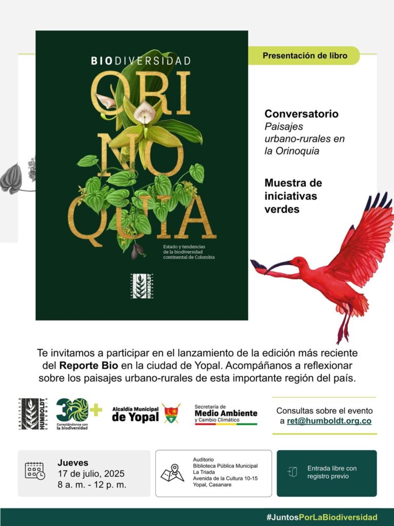 La biodiversidad de la Orinoquia será protagonista este jueves 17 de julio, con la presentación oficial de la más reciente edición del Reporte Bio: “Biodiversidad Orinoquia. Estado y tendencias de la biodiversidad continental de Colombia”, un espacio de encuentro para dialogar, aprender y valorar la riqueza natural de nuestra región.