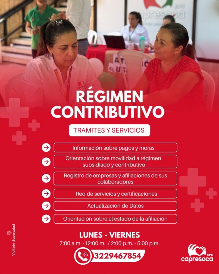 - Régimen Contributivo: Dirigido a trabajadores, pensionados y sus familias, este régimen garantiza el acceso a un completo plan de beneficios en salud. Capresoca EPS ofrece toda la orientación necesaria para el proceso de afiliación, pago de aportes y gestión de novedades.