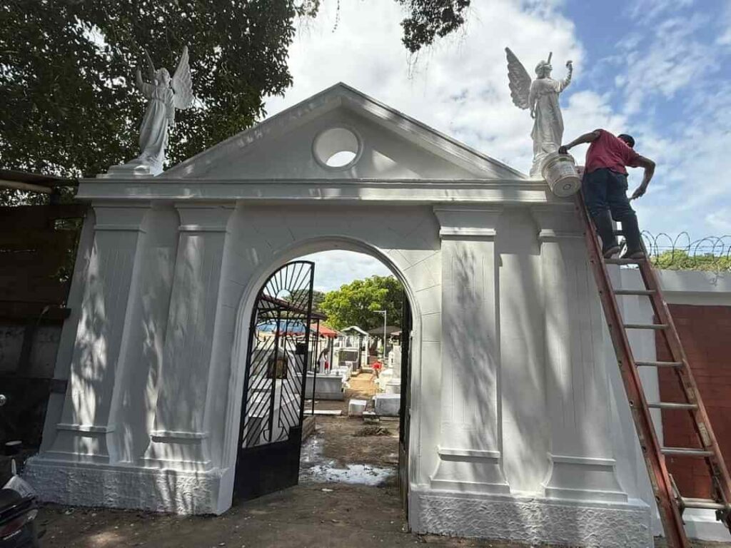 Diferentes sectores y los mismos funcionarios colocarlo el material y los elementos y el apoyo desinteresado de la comunidad se unió esfuerzo y colaboración y se logró en tiempo récord mejorar las condiciones del campo santo donde la administración viene haciendo otras adecuaciones, condiciones de seguridad e iluminación.