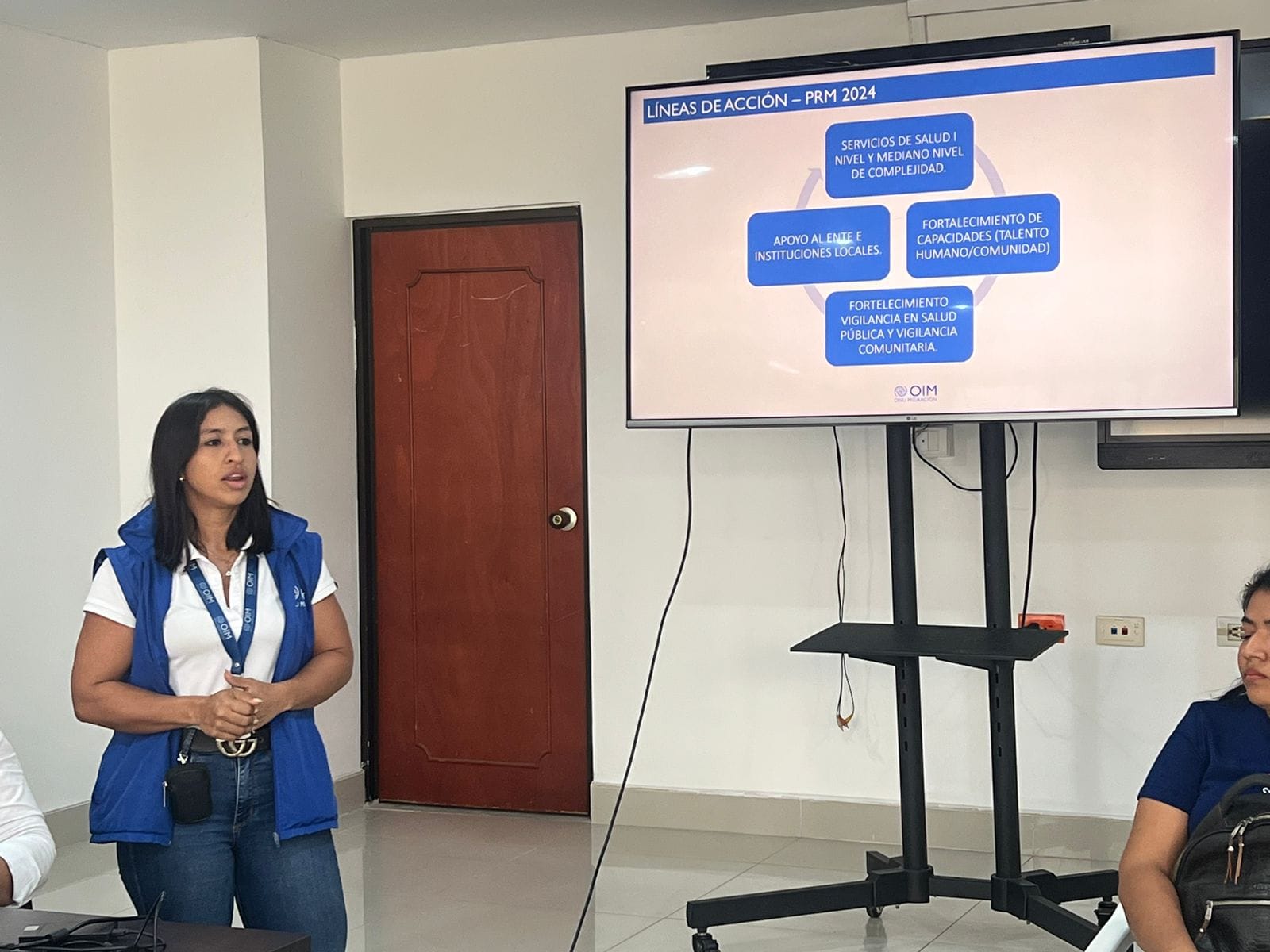 La profesional Ángela Merchán del área del eje de promoción Social explicó que “El objetivo de garantizar la coordinación y articulación para abordar las brechas y prioridades humanitarias en salud identificadas en situaciones de emergencias”.