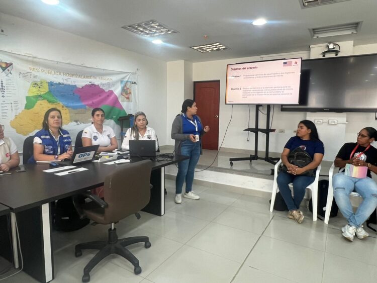 La profesional Ángela Merchán del área del eje de promoción Social explicó que “El objetivo de garantizar la coordinación y articulación para abordar las brechas y prioridades humanitarias en salud identificadas en situaciones de emergencias”.