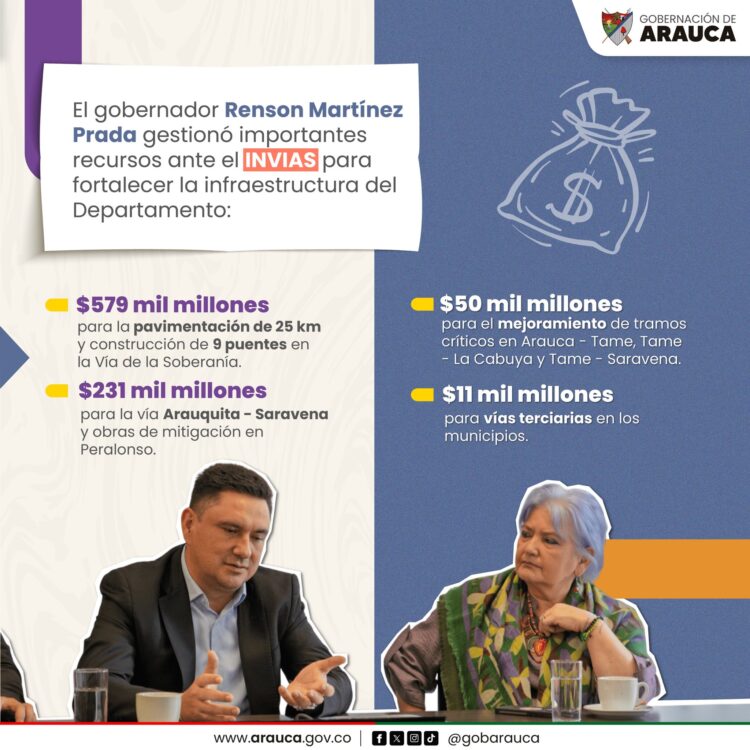 ARAUCA, ARAUCA – El departamento de Arauca se prepara para una transformación vial sin precedentes gracias a una gestión liderada por el gobernador Renson Martínez Prada, que ha asegurado una inversión superior a los 870 mil millones de pesos destinados a proyectos de infraestructura en toda la región.