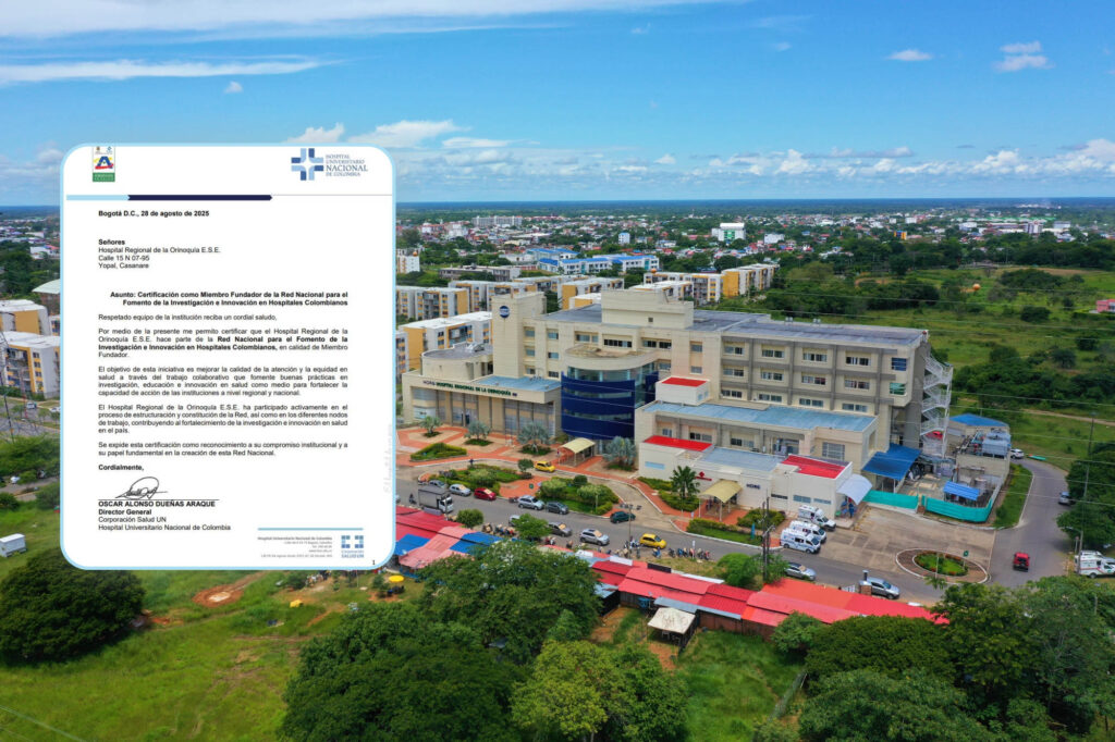 El Hospital Regional de la Orinoquía E.S.E., recibió el pasado 28 de agosto de 2025, la certificación oficial que lo acredita como Miembro Fundador de la Red Nacional para el Fomento de la Investigación e Innovación en Hospitales Colombianos, una iniciativa de gran impacto nacional que busca fortalecer la calidad de la atención en salud y promover la equidad a través del trabajo colaborativo.