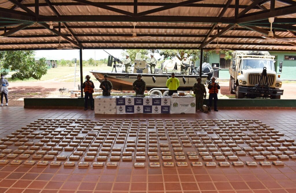 En desarrollo de operaciones fluviales conjuntas entre unidades de la Armada de Colombia, el Ejército Nacional de Colombia y la Fuerza Aeroespacial Colombiana, fueron incautados 464 kilogramos de clorhidrato de cocaína cerca de la ribera del río Meta, en área general de Cravo Norte – Arauca.