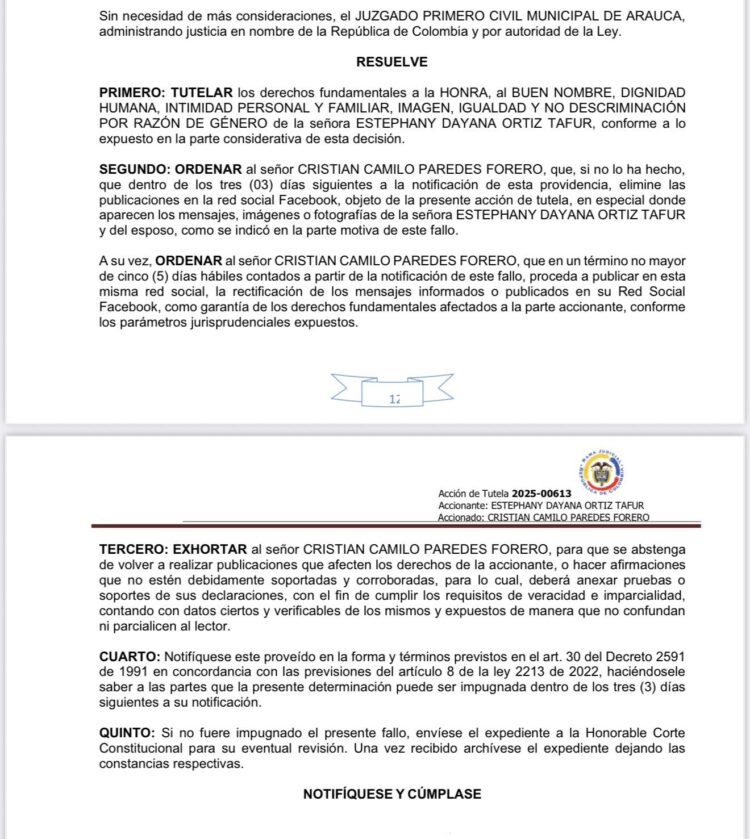 Finalmente, agradeció el apoyo de su familia y de la comunidad, reafirmando su compromiso de trabajar por una sociedad más justa. «Este triunfo reafirma que la verdad siempre prevalece sobre la mentira, y que el respeto será siempre la base de nuestro trabajo por una Arauca más justa, más humana y más libre de violencia digital», concluyó.