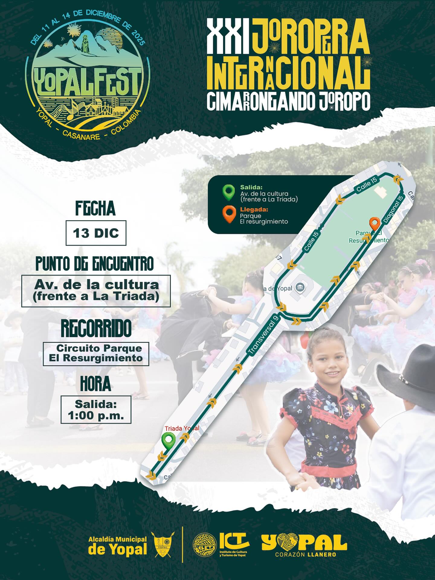 La danza es el alma de nuestra cultura, y este 13 de diciembre, la XXI Joropera Internacional Cimarronando Joropo se erige como la máxima expresión de nuestra identidad llanera. Este evento formará parte del Encuentro Cultural de la Orinoquía YOPALFEST 2025, donde el joropo será el protagonista.