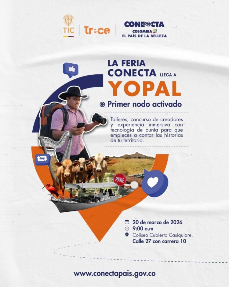 Mañana viernes 20 de marzo de 2026, Yopal recibe la Ruta TIC – Conecta País, una estrategia que impulsa la capacitación tecnológica, la creación de contenidos digitales y la visibilización de los atractivos de nuestro departamento, con la presencia del Viceministro de Transformación Digital, Giovanny Andrés López Cabezas.