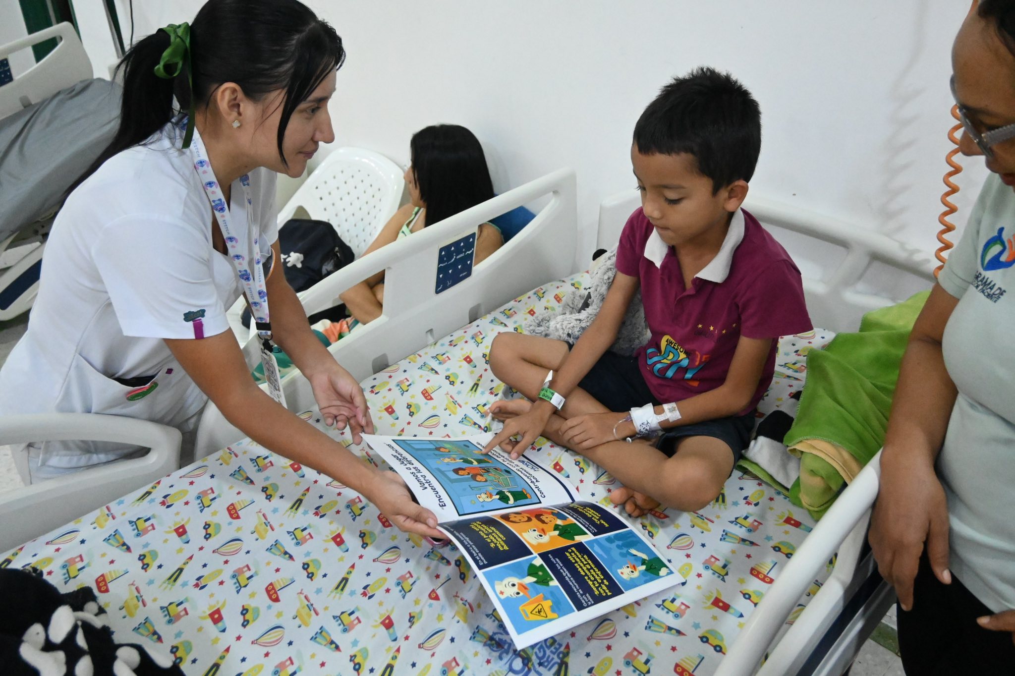 Durante la jornada, se realizó la lectura de la historieta en los servicios de Pediatría Hospitalización y Urgencias Pediátricas , llevando educación, prevención y alegría a nuestros pacientes y sus familias.