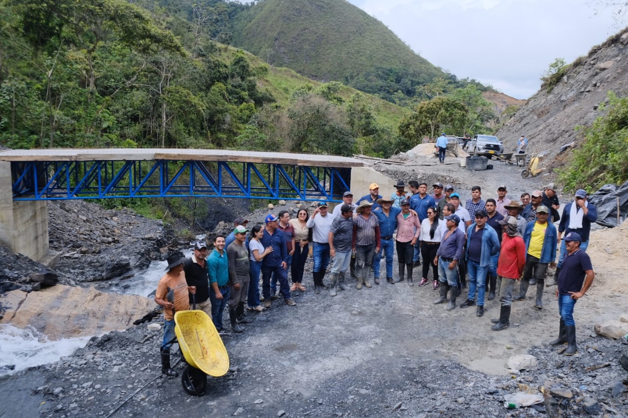Posteriormente, el gobernador visitó la vereda Teguita Alta, donde se ejecutan dos puentes vehiculares sobre las quebradas Caracoleña y Teguitana. Las estructuras, en concreto reforzado, tienen una longitud estimada de 25 metros y un ancho de 4 metros. Con apenas tres meses de ejecución, presentan un avance del 50 % y una inversión superior a los 5.700 millones de pesos, provenientes del Sistema General de Regalías. Estas obras beneficiarán a más de 976 personas, entre ellas estudiantes que deben cruzar diariamente por este punto para asistir a clases, así como campesinos que transitan por la zona para comercializar sus productos.
