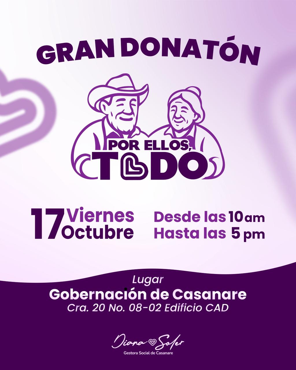 La campaña cerrará su fase de recolección con una gran donatón el 17 de octubre en el Centro Administrativo Departamental (CAD), entre las 10 de la mañana y las 5 de la tarde.