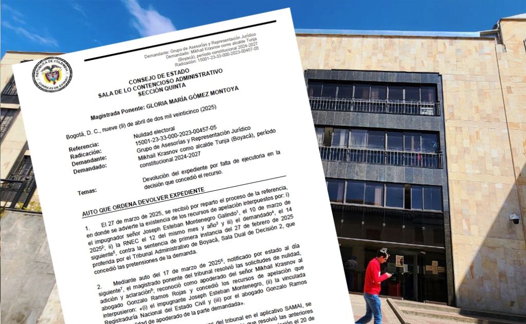 Un recurso de apelación, al parecer extemporáneo, pero sin respuesta por parte del Tribunal Administrativo de Boyacá, frente a la sentencia en primera instancia, proferida por ese tribunal en el proceso de nulidad electoral contra el alcalde Mikhail Krasnov, llevó al Consejo de Estado a devolver el expediente a Tunja.