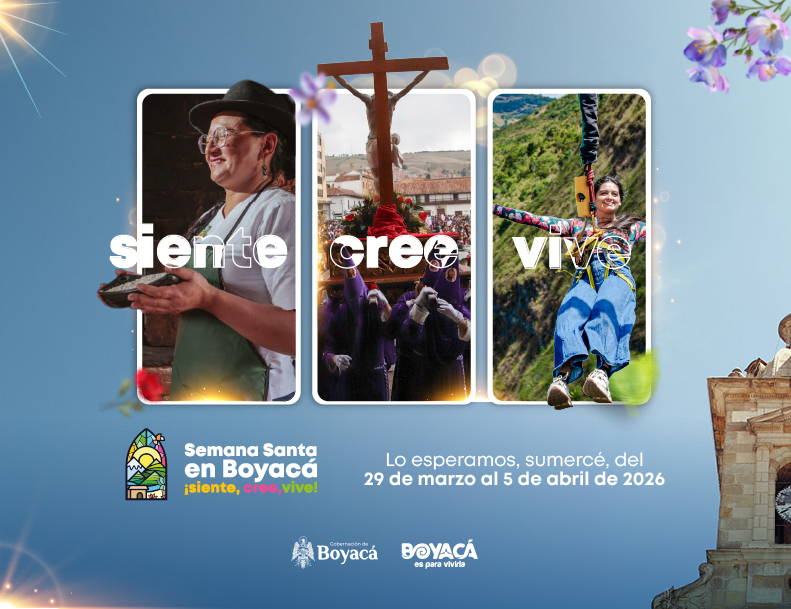 Tunja, 27 de marzo de 2026. (UACP). Bajo el lema “Siente, Cree, Vive”, Boyacá invita a colombianos y visitantes del mundo a vivir una Semana Mayor inolvidable, donde la fe, la cultura y la calidez humana se unen en una programación imperdible del 29 de marzo al 5 de abril de 2026.