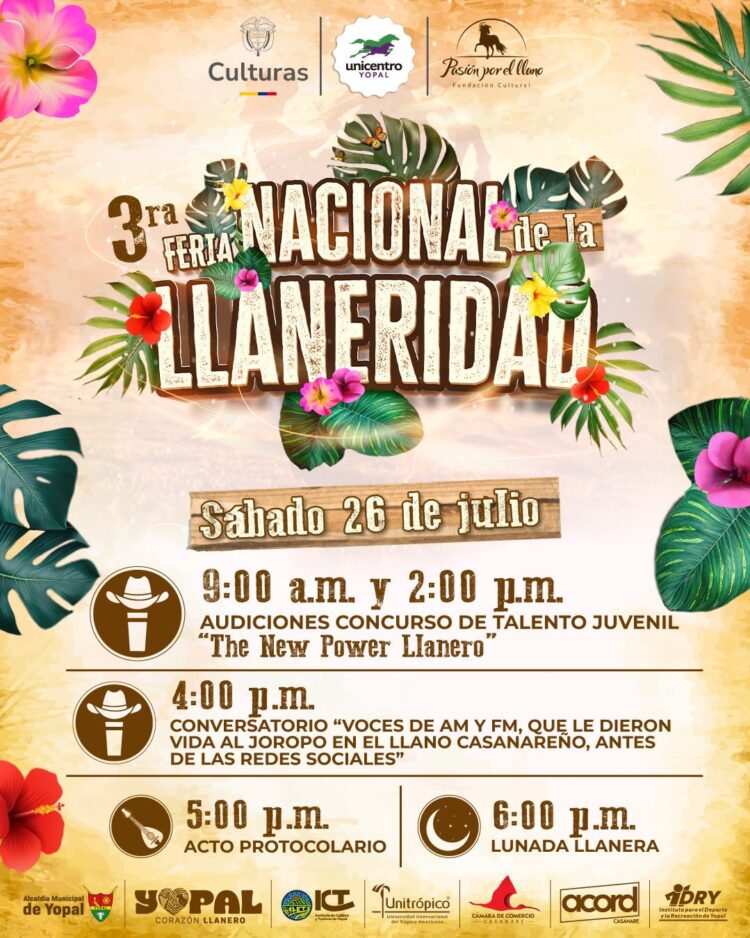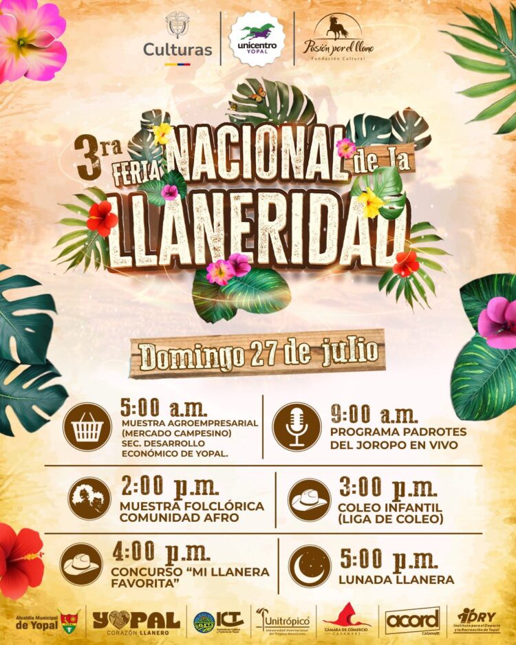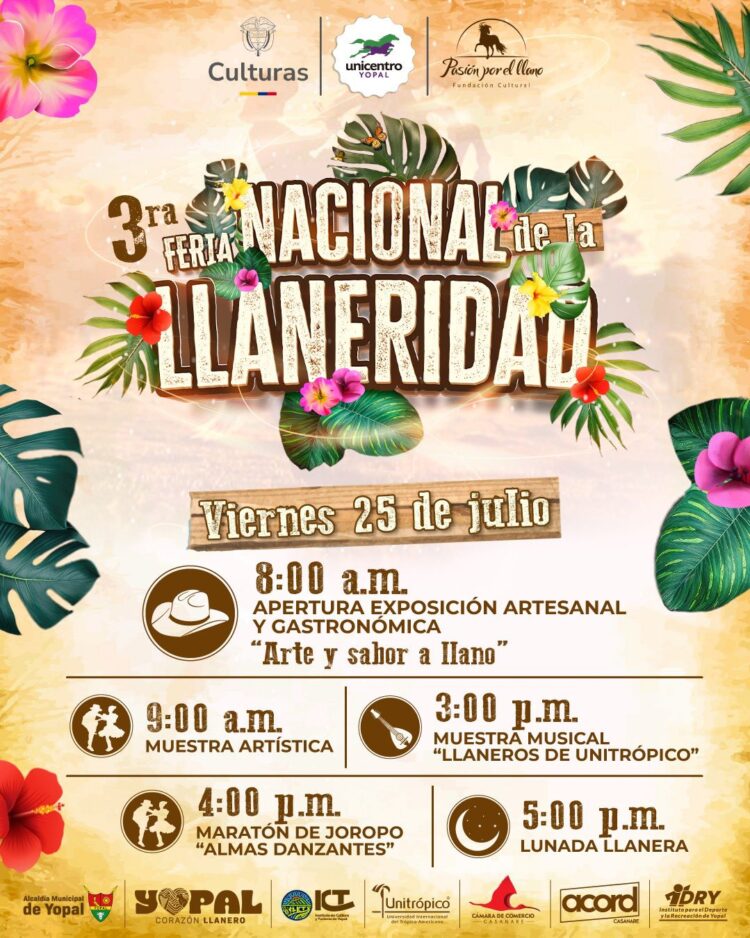 La capital casanareña se prepara para recibir uno de los eventos culturales más esperados del año: la 3ra Feria Nacional de la Llaneridad, que se llevará a cabo del 25 al 27 de julio en las instalaciones de Unicentro Yopal.