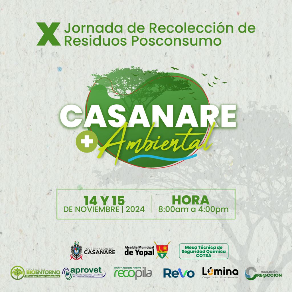 Los días 14 y 15 de noviembre, Yopal participará en la décima jornada departamental de residuos posconsumo que tendrá lugar como resultado de la articulación institucional entre la Gobernación de Casanare, la Alcaldía de Yopal, la Mesa Técnica de Seguridad Química del Consejo Territorial de Salud Ambiental y diversas empresas que se especializan en la disposición final de este tipo de desechos.